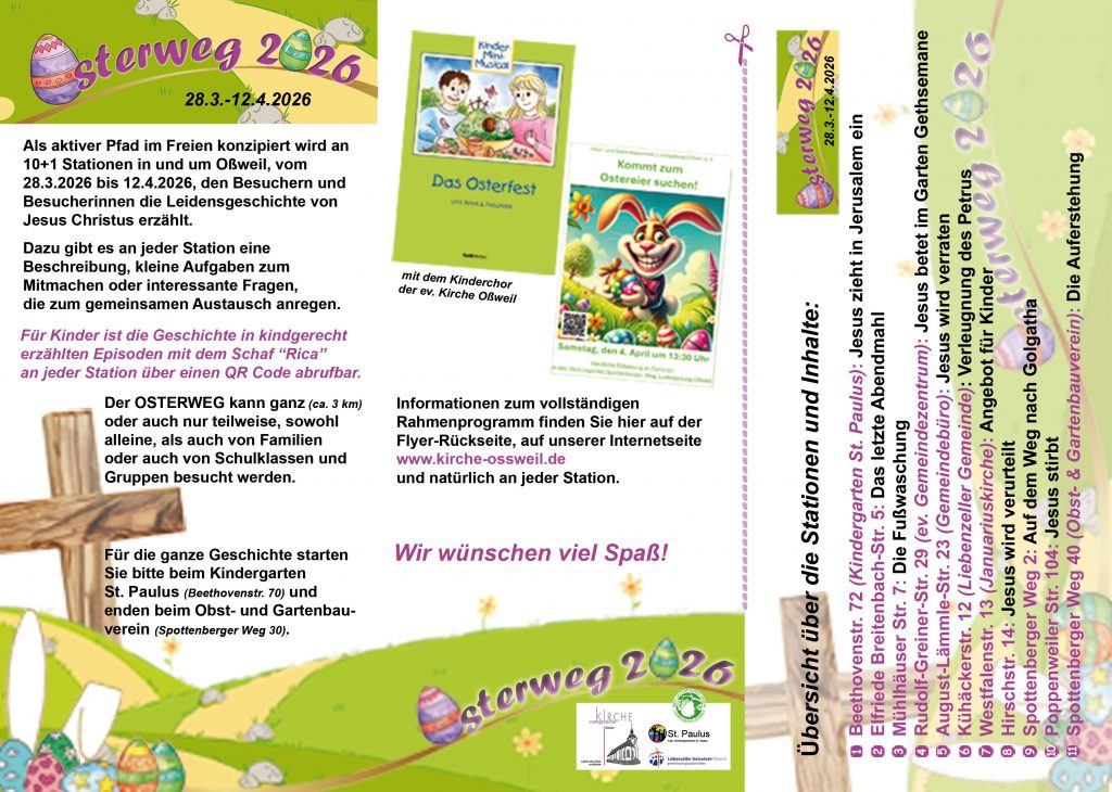 Osterweg 2026 Erstellt am 10. März 202610. März 2026 von Wolfram Hartmann Teile diesen Beitrag über folgende Plattformen:E-Mail drucken teilen teilen teilen merken RSS-feed teilen